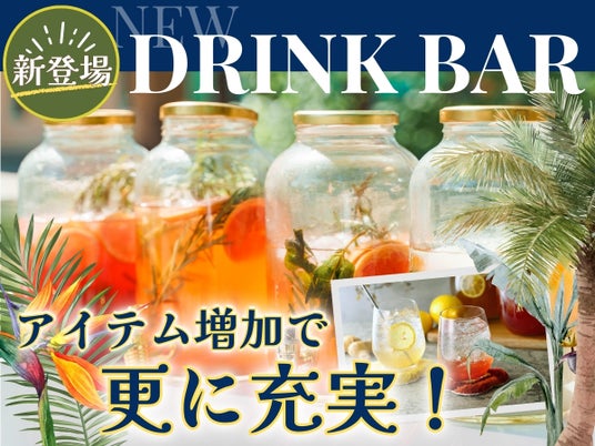 オレンジジュースやカルピスなどの冷たいドリンク、100%果実発酵酢で果実のおいしさを楽しむ『美酢』、12種類の茶葉を取りそろえたティーバーなど、お料理とともにお楽しみいただけるラインナップに加え、炭酸で割って味わう2種類の「オリジナルクラフトシロップ」や、ほんのりすっきり!優しい甘さの「フルーツティー」、気分に合わせてフレーバーコーヒーが楽しめる「MONIN(モナン)」などが仲間入り!