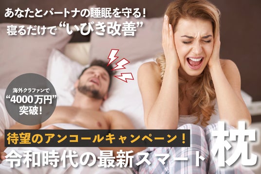 昨年多くの支援を獲得した「いびき改善Z6マクラ」クラウドファンディングプロジェクト!お客様のアンコールにより3/3より再公開!
