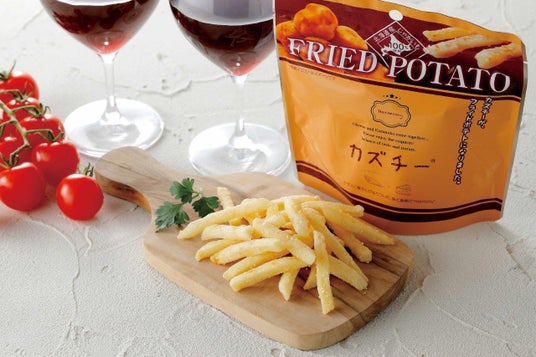 かずのことチーズの絶妙なハーモニーで人気を誇る「カズチー」から、新たなおつまみスナックが誕生しました!このたび、カズチーの美味しさをそのままスナック菓子にした『カズチーフライドポテト』を発売いたします。フライドポテトのサクサク食感に、カズチーをフリーズドライしパウダー状にした特製シーズニングをまぶし、燻製の香ばしさとチーズのコクをしっかりと感じられる味わいに仕上げました。おやつにも、おつまみにも最適!ワインやビールとの相性抜群!じゃがいもは北海道産を使用。