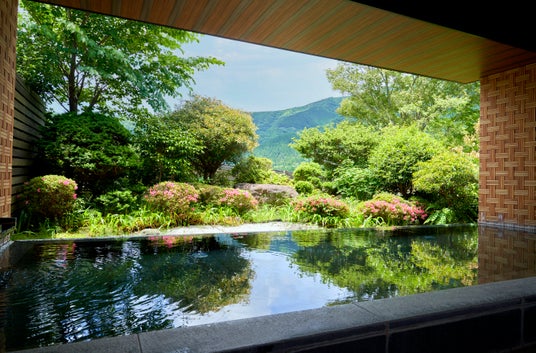 名湯「姥子温泉」を源泉とする温泉浴場からは、雄大な箱根外輪山の景色が楽しめる