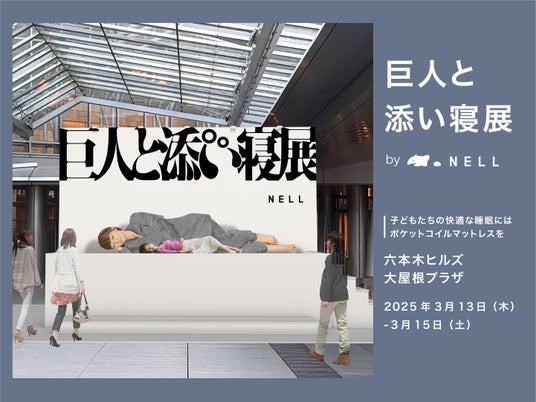 上質な寝心地を手に届く価格でお届けする、こだわりの寝具ブランド「NELL(ネル)」を提供する株式会社Morght(本社:東京都港区、代表取締役:土井皓貴、読み:モート、以下「当社」)は、世界睡眠デーに合わせて、ポップアップイベント「巨人と添い寝展 by NELL」を2025年3月13日 (木) ~15日 (土) の3日間限定で六本木ヒルズ大屋根プラザにて開催いたします。