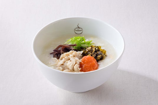 「粥餐庁」のおかゆは、1967年創業、医食同源の哲学を大切にした本格中国料理「謝朋殿」から受け継いだ、“からだを内側から元気にする”本格中華粥。中国では医食同源の思想の下、身体を温めることが健康につながると考えられており、毎朝熱々の自家製スープ※で生米から毎日じっくり炊き上げる栄養豊富でうまみたっぷりの生姜入りのおかゆは、食べることでからだを内側からゆっくりやさしく温めてくれます。