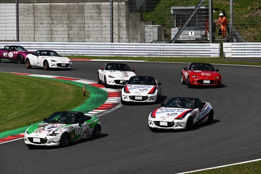 マツダロードスターによるワンメイクレースで、車の性能は同じ条件の中、ドライバーの腕を競うレースです。