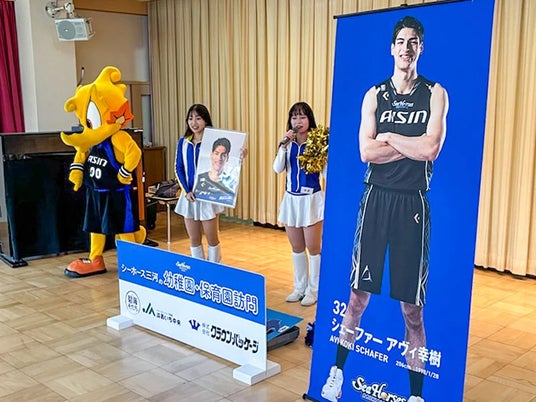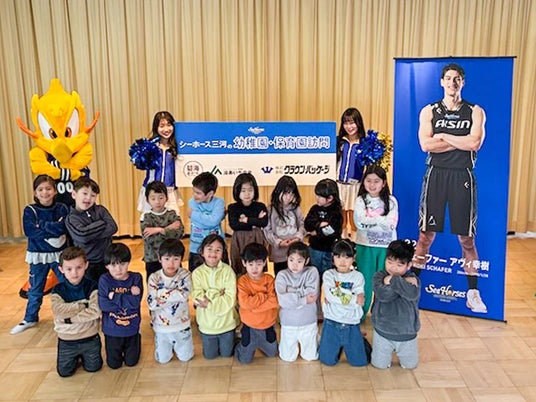 2025年2月5日(水)、シーホースくんとSuper GirlsのTOMOMI、YUKIがみその保育園(安城市)を訪問し、園児の皆さんと一緒にクイズやダンスを楽しみました。