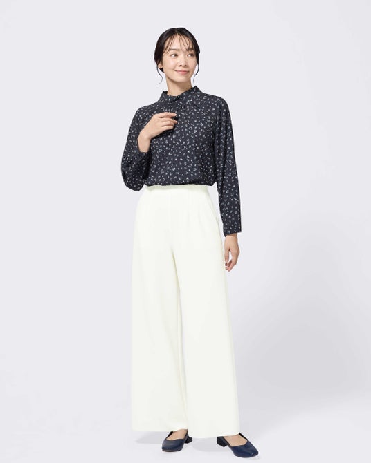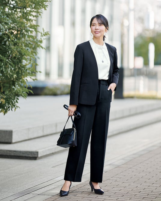 ソフトストレッチで動きやすいセミワイドパンツ柔らかい肌ざわりのストレッチ素材で動きやすいのに、きちんと見えするソフトストレッチシリーズ。パンツはレギュラー丈とロング丈を選ぶことができ、ハレの日だけでなく日常の通勤服にもおすすめです。
