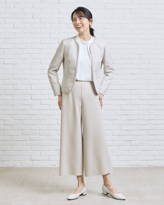 パンツ合わせでもワンピース合わせでも、きちんと見えます。