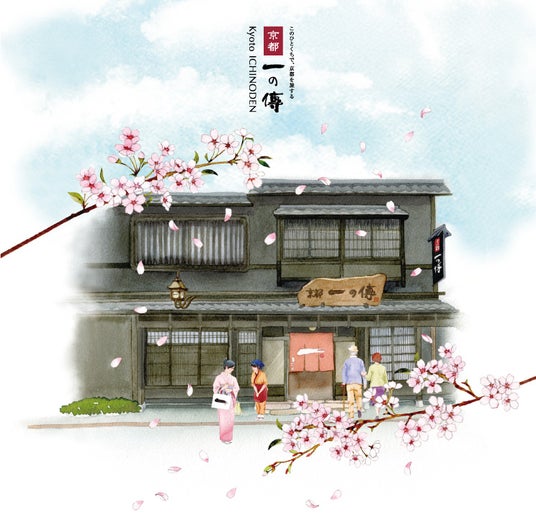 門出は、錦市場近くに佇む京都一の傳 本店と桜をあしらった季節限定の掛け紙でお届けします。この春に新しいスタートを迎えるご家族やご友人への贈り物としてもご利用いただけます。