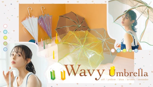 今年の新作にはユニークな形や色使いが目を引く2種のビニール傘が登場!優雅に泳ぐマーメイドの気分を味わえる『マーメイドアンブレラ』(長傘・折りたたみ傘)と、個性派デザインで魅せる『ウェービーアンブレラ』(長傘/キッズ展開あり)は、ビニール傘ならではの透明感や軽やかさを活かしたアートのような作品に。Wpc.が掲げる”傘はファッションだ。”というテーマを体現したファッション感度の高い仕上がりとなっています。