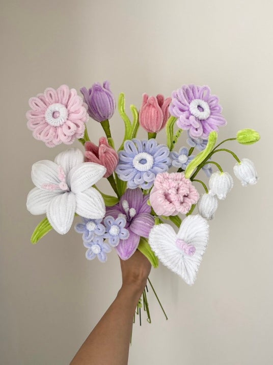 色や花びらの形、さらにお花に込められたメッセージなど、バリエーション豊かなモールフラワーをピックアップし、あなたの想いを込めたブーケを自由に束ねてみてください。