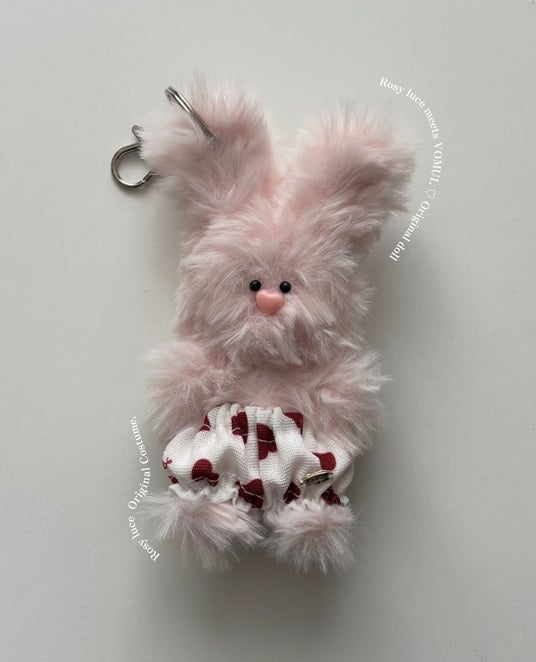 Rosy luceの想いが込められたオリジナル生地の"はぎれ"を使用し、サステナブルな衣装に仕立てた点もポイント。バッグなどにつけて、自分らしくカスタマイズをお楽しみください。