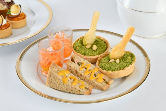 ティースタンドを彩るスイーツは、グラデーションが美しい紫陽花を表現したグラスデザートや華やかなフィナンシェ、バラとフランボワーズのグミにサクサクのチョコレート生地の食感が楽しいパート・ド・フリュイ、切り株に見立てたジャスミンを使用したロールケーキなど、季節の花々をイメージしました。セイボリーは、野菜畑のキッシュや日向夏とラベンダー香るキャロットラペなど、緑豊かなガーデンのような雰囲気に仕上げました。春から初夏にかけて彩りを増す美しい庭園を眺めているようなティータイムをお過ごしいただけます。一品ごとにこだわりが詰まったティーフーズとともに、おいしい紅茶に癒されるひとときをごゆっくりとご堪能ください。