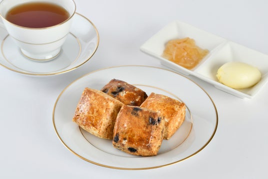 アフタヌーンティーで提供をしているホテルメイドのスコーンをご自宅でも お楽しみいただけます。季節によって変わる限定のフレーバーとプレー ンの2種類を各2個、計4個入りでご用意、香ばしいサクサク感と中のしっとりとした食感を、朝食やティータイムでお楽しみください。