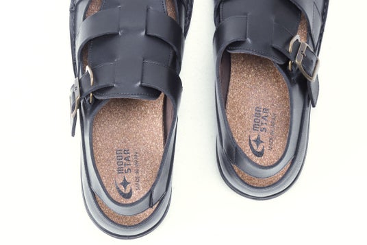 SLUヘギ大和時代から使われてきた包装材「経木(ヘギ)」から着想を得た足を包み込むデザイン。新感覚な革靴×甲バンドの組合わせの面白さも魅力。ゆるりとした暮らしになじむクロッグスタイルの一足です。