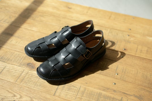 ゆったりとのんびりできる日常靴がコンセプト。ユニセックス展開です。革靴のかしこまった雰囲気とほどよいゆるさが絶妙なデザインとやさしい履き心地で、近くのカフェや図書館などちょっとしたお出掛け・お食事などにちょうどいい靴です。アッパーには国内タンナーで鞣(なめ)されたジャパンレザーを使用しており、厚口の本革で履き込むほどに味わいが増します。素材を余すことなく使う視点から、これまで廃棄していたトラと呼ばれるシワや血筋の部分も大切に使います。これにより一足一足異なる革の表情も楽しめます。
