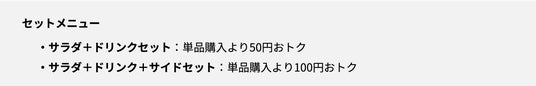 近年、健康志向の高まりや日々忙しい方々の食事スタイル・ニーズが多様化する中、クリスプサラダワークスでは、サラダのカスタマイズだけでなく「食事体験そのもの」を自由にカスタマイズできるように、サラダとドリンク、サイドをおトクに組み合わせられる「セットメニュー」を導入します。多彩なドリンクやサイドをサラダと一緒におトクに購入してもらうことで、忙しい毎日でも手軽に「ヘルシーで満足感のある食事」を実現していきます。