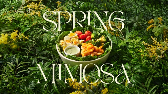 春の訪れを感じる「スプリングミモザ」は、彩り豊かで華やかなサラダ。プリッとしたグリルドシュリンプとクリーミーなタルタルが相性抜群で、スパイシーブロッコリのピリッとしたアクセントが後を引くおいしさ。ローストトマトの甘みとハーブが香るグリーンゴッデスドレッシングが爽やかにまとめてくれます。