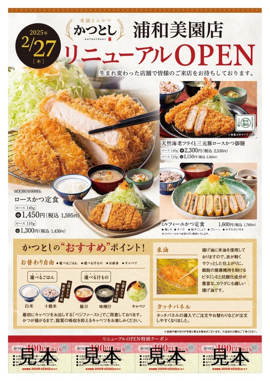 【米油とんかつ】キャベツがお代わり自由!?「かつとし」浦和美園店が2025年2月27日(木)にリニューアルオープン!