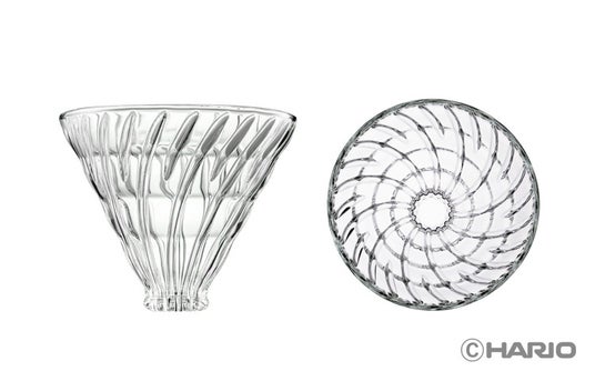 スパイラルリブ(凹凸)ドリッパーの内部のリブ(凹凸)を高く上部までのばしたことにより、ペーパーとドリッパーの間に空間ができます。「蒸らし」の際に、この空間から空気が抜け、コーヒー粉がしっかり抜けるので、ネルドリップのような味わいになります。