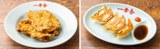 唐揚げ(3ケ)(写真上左)| 餃子(5ケ)(写真上右)