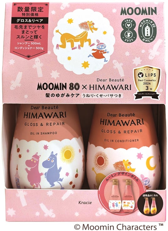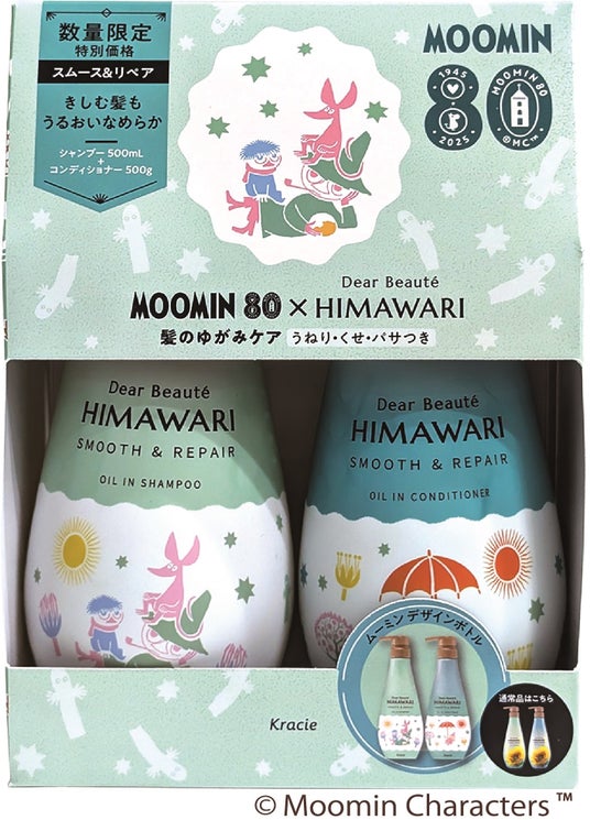 クラシエ株式会社(ホームプロダクツカンパニー)は、髪のうねり、くせ、パサつきの原因となる「髪のゆがみ」を整え、素直な髪へ導く「ディアボーテ HIMAWARI」から、人気キャラクター「ムーミン」とコラボレーションした限定デザインの「シャンプー&コンディショナー」を2025年3月24日(月)に数量限定で発売いたします。「ムーミン」80周年を記念した限定デザインを採用しました。