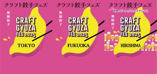 2025年ゴールデンウィーク、全国各地からこだわり餃子が集結する「クラフト餃子フェス(R)」(http://craftgyoza.jp)が東京・福岡・広島の3都市にて開催決定! 東京、福岡会場は、4月25日(金)~5月6日(火・休)までの12日間、広島会場は、4月29日(火・祝)~5月6日(火・休)までの8日間での開催。ゴールデンウィーク定番のおでかけスポットとしても人気の「クラフト餃子フェス(R)」が今年も“餃子を愛するすべての人へ”、選りすぐりのクラフト餃子とクラフトビールをお届けいたします。広島会場は世界のビールが大集合!