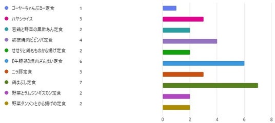 上記の過去に販売していた10定食以外にも復活してほしいメニューをフリーアンサーで店長にお聞きしました。その結果、2017年と2018年に販売した『鶏もも一枚揚げ定食』と2021年に販売した『筋肉定食』が多く票が集まりました。ご飯が進むようなガッツリ食べたいメニューも店長から人気です。