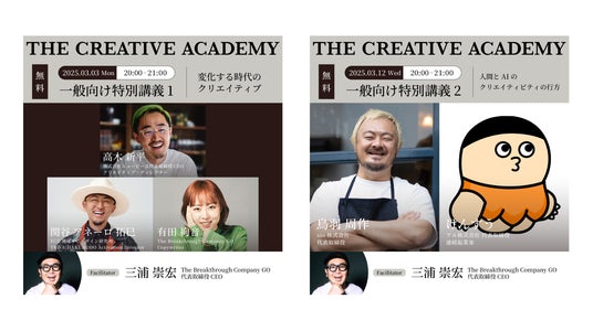 「THE CREATIVE ACADEMY 2025 1st」の開講にあたり、どなたでも無料で参加可能なオンラインの「一般向け特別講義」を、募集期間中に2回開催。