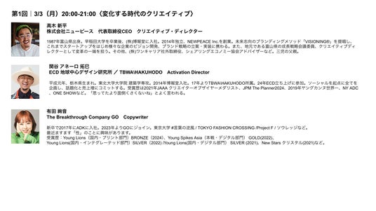第1回|3/3(月)20:00-21:00 〈変化する時代のクリエイティブ〉