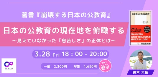 【開催決定!!】3月28日(金)日本の公教育の現在地を俯瞰する ~見えていなかった「息苦しさ」の正体とは
