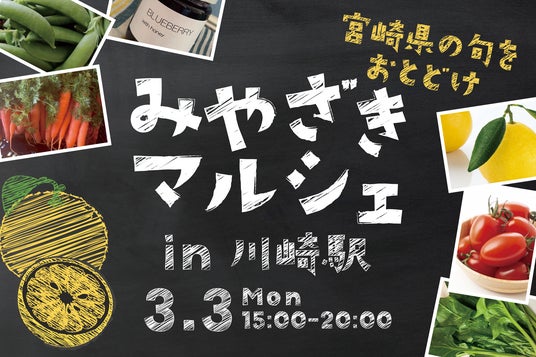 ホテルメトロポリタン 川崎(運営/日本ホテル株式会社、総支配人/金田 文典)は1月15日(水)~4月14日(月)に直営のオールデイダイニングTerrace and Tableにて開催している「宮崎フェア」の出張イベントとして、3月3日(月)に川崎駅 中央南改札内にて「みやざきマルシェ」を開催いたします。
