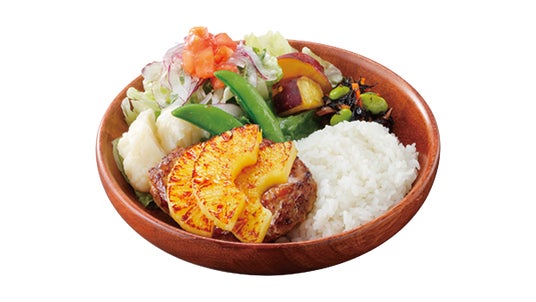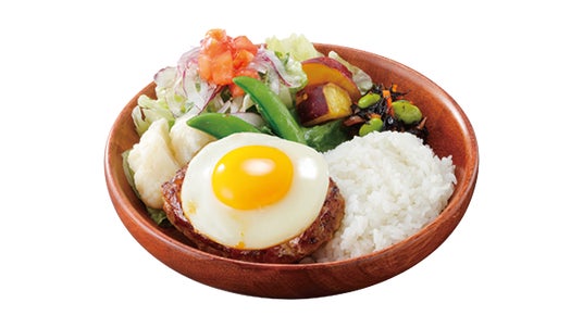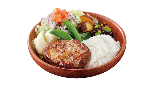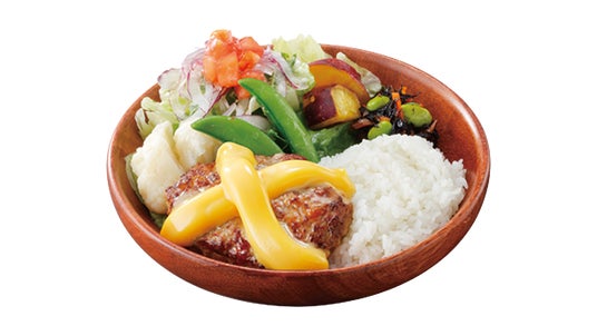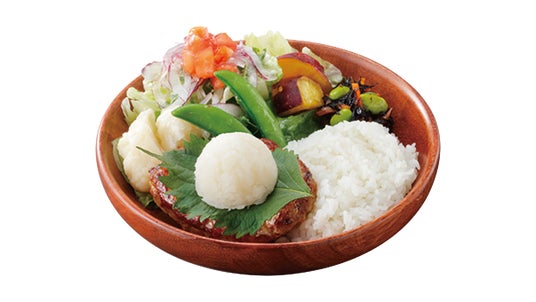 「いろどりセット」は、ハンバーグとライスに、2種の野菜を含むひじきサラダ(ひじき、人参、枝豆)とさっぱりとした味わいのマスタード風味のドレッシングをかけた9種の野菜サラダ(白菜、ケール、ロメインレタス、レタス、アーリーレッド、カリフラワー、トマト、サツマイモ、スナップエンドウ)を添えた「いろどりディッシュ」(SSサイズ/Sサイズ)に加え、ビーフコンソメとソテーオニオンにパルミジャーノのコクと旨味がマッチした今年初登場の「ビーフコンソメスープ」または人気メニューの「みそ汁」、食後にぴったりな小さめデザート「北海道ミニソフト」またはドリンクが自分好みに選べるセットです。