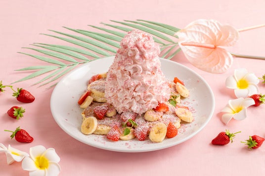 コナズ珈琲で不動の人気No.1メニュー*が、春の装いで新登場!上品なハワイアンピンクと、ほのかに香るいちごの風味「ピンクストロベリー&バナナホイップパンケーキ」