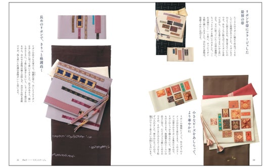 刺しゅう・リボン・パッチワークから、きもの好き憧れの「きりばめ」まで。小倉さんおすすめの二部式帯の作り方も紹介しています。