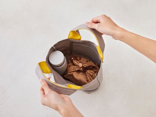 ランチバッグやサブバッグにぴったりなサイズ感のトートバッグ。足あとを辿って持ち手部分をめくると猫が刺繍されている遊び心のあるデザインです。