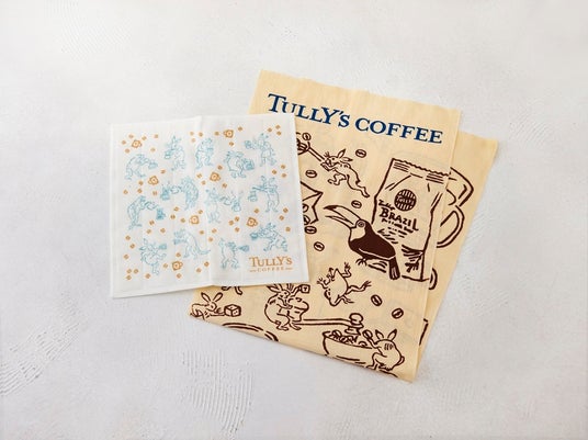 写真右「タリーズ手ぬぐい鳥獣戯画 珈琲の世界(ライトイエロー)」 1,870円(税込)