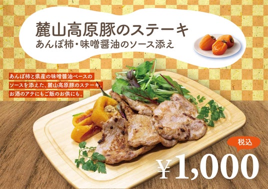 ・麓山高原豚のステーキあんぽ柿・味噌醤油のソース添え/税込1,000円
