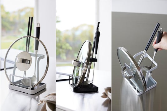 調理中に置き場所に困るお玉・鍋ふた・菜箸の一時置きに便利なスタンド。