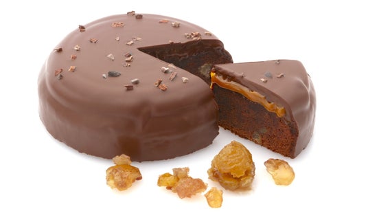 フランス産のシロップ漬けマロン、和栗ペースト、レーズンをラム酒に漬け込み、濃厚なショコラ生地に合わせ焼き上げました。しっとり優しい生地の食感とゴロっと入った栗のコントラストをお楽しみいただけます。キャラメルをたっぷりと絞り、ビターチョコレートでコーティングした逸品です。
