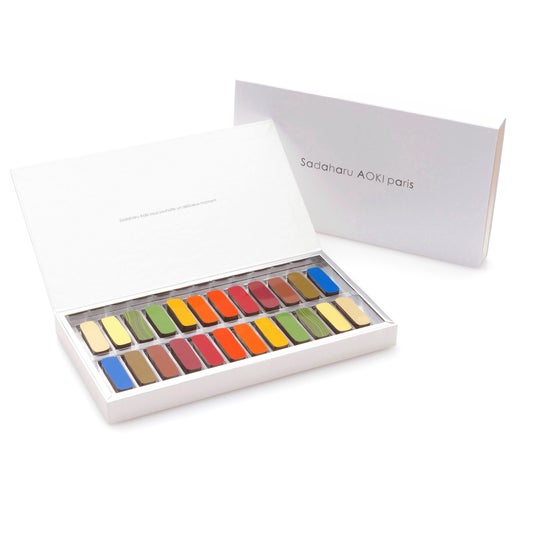 蓋を開けると化粧パレットをイメージしたカラフルなショコラがずらりと並ぶ、サダハルアオキの代表的ショコラ。圧巻の美しさを放つ24個入りのボックスがホワイトデー限定で登場します。
