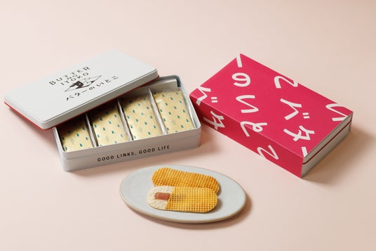 「バターのいとこ」より、オリジナル缶のギフトボックスが初登場!風呂敷をイメージしたスリーブで、よりギフト感がアップしました。