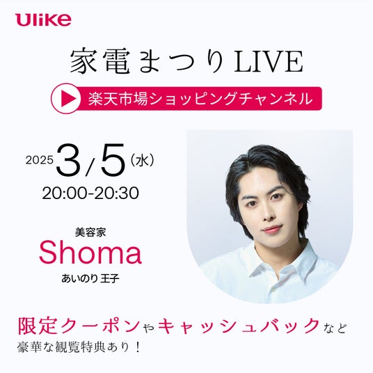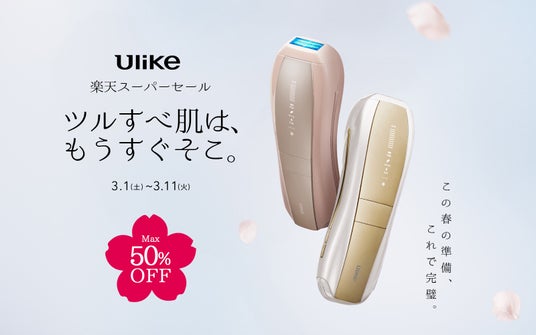 家庭用美容機器メーカー「ユーライクジャパン株式会社」(本社:東京都港区)が展開する光美容器世界NO.1(*1)ブランド「Ulike(ユーライク)」は、3月4日(火)20時よりスタートする楽天スーパーSALEに先駆け、3月1日(土)0時より、最新モデル「Ulike Air 10(ユーライク エアテン) IPL光美容器」や、ムダ毛&美肌のWケア機能を備えた「Ulike Rose(ユーライク ローズ) IPL光美容器」を含む人気機種6製品を、最大50%オフの特別価格で販売いたします。