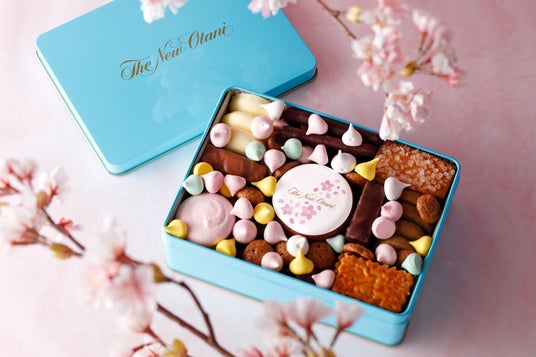 5種のチョコレート、パルメザンチーズクッキーやアールグレイクッキーをはじめ、個性あるフレーバーのクッキーに、カラフルなメレンゲが鮮やかな″オータニブルー″に詰められた『SATSUKIチョコレート&クッキー』。春限定で桜のデザインがあしらわれたクッキー缶に桜風味のクッキーと桜メレンゲが仲間入り。新しい門出のお祝いやお手土産にいかがでしょうか。