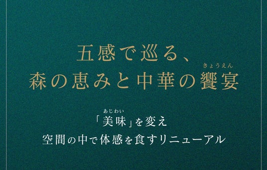 新たなコンセプトは 「五感で巡る、森の恵みと中華の饗宴」。
