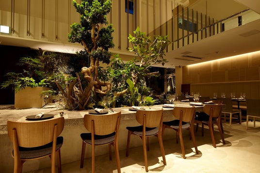 店内は、木々に囲まれたかのような演出を取り入れ、視覚や嗅覚、そして静寂やざわめきまで含めた“音”も演出の一部としています。訪れるたびに新たな五感の発見がある、そんな食体験をご用意しています。