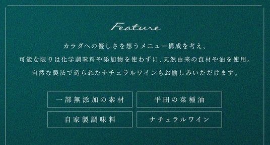 「熱香森(ラシャンセン)」は、可能な限り化学調味料や添加物を使わず、カラダの内側から美と健康をサポートする新感覚中華ダイニングとして、新たにメニューをリニューアルいたします。天然由来の食材や油を使用し、自然な製法で造られたナチュラルワインもお楽しみいただけます。