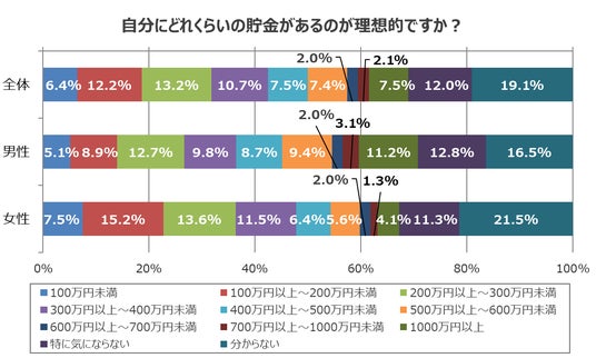また、お相手の貯金については、「特に気にならない」(16.5%)が最も多く、次いで「200万円以上~300万円未満」(15.0%)、「100万円以上~200万円未満」(12.0%)となりました。自分の貯金については、「200万円以上~300万円未満」(13.2%)が最も多く、次いで「100万円以上~200万円未満」(12.2%)、「特に気にならない」(12.0%)となりました。
