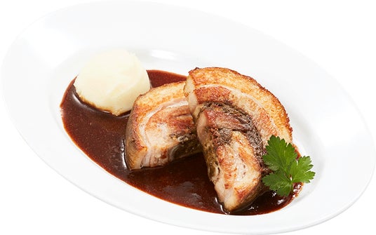 豚肉にローズマリーやタイムなどのハーブやガーリックを合わせ、長時間ローストしました。豚肉の旨みとハーブの豊かな香りが食欲をそそる食べ応え抜群の一品です。ガーリックが効いたマッシュポテトやデミグラスソースと合わせてお楽しみください。アルコールやお好きなメニューと組み合わせてのご注文がおすすめです。