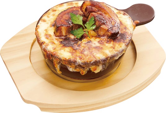もちもち食感のフェットチーネを使用した“窯焼きチーズパスタ”に分厚いポルケッタをあわせたボリューム満点な商品が登場します。ポルケッタとは豚肉にローズマリーやタイムなどのハーブやガーリックを使い、長時間ローストしたイタリアの伝統料理です。豚肉の旨みやハーブの豊かな香りをたっぷりの野菜やチーズとともにご堪能ください。