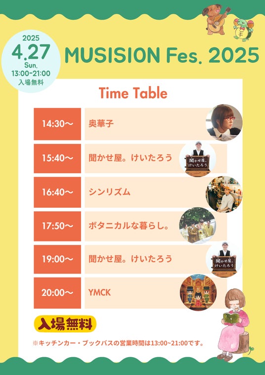 すでに発表済みの聞かせ屋。けいたろう、シンリズム、YMCKに加え、新たに奥華子、ボタニカルな暮らし。の出演が決定しました。