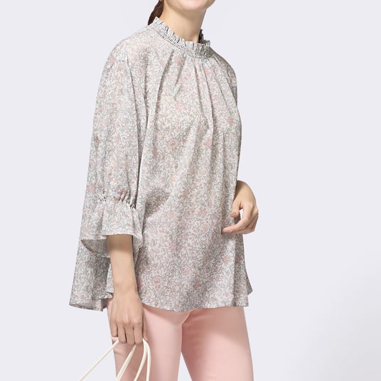 水彩タッチ更紗プリントブラウス【価格】3,490円(税込)